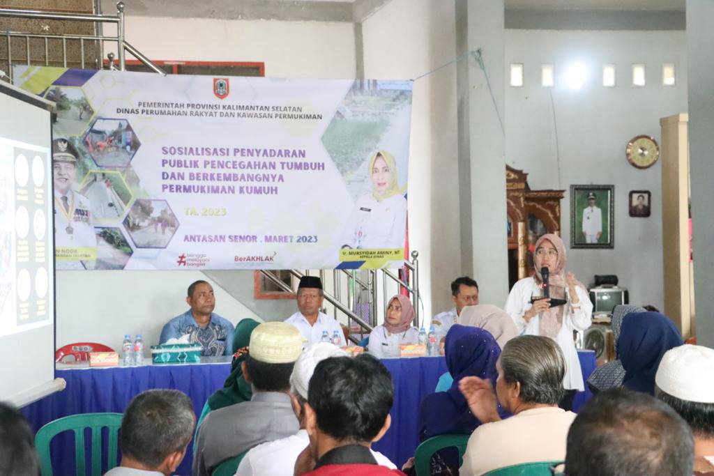 MARTAPURA, KALIMANTANLIVE.COM – Guna meningkatkan kesadaran masyarakat akan pentingnya menjaga lingkungan, Dinas Perumahan Rakyat dan Kawasan Kumuh Provinsi Kalimantan Selatan (Kalsel), memberikan sosialisasi penyadaran publik pencegahan tumbuh dan berkembangnya permukiman kumuh di Aula kantor kepala desa antasan senor Kabupaten Banjar.