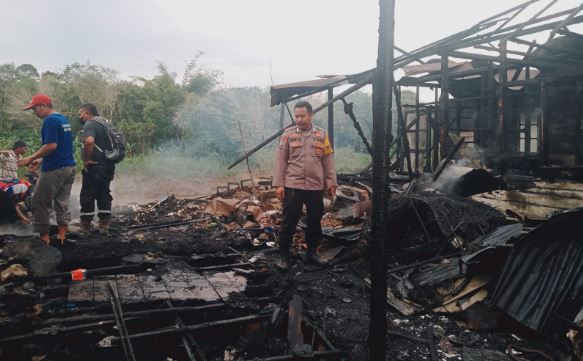 Petugas Satreskrim Polres Tabalong bersama Polsek Murung Pudak mengamankan dan melakukan olah tempat kejadian kebakaran.