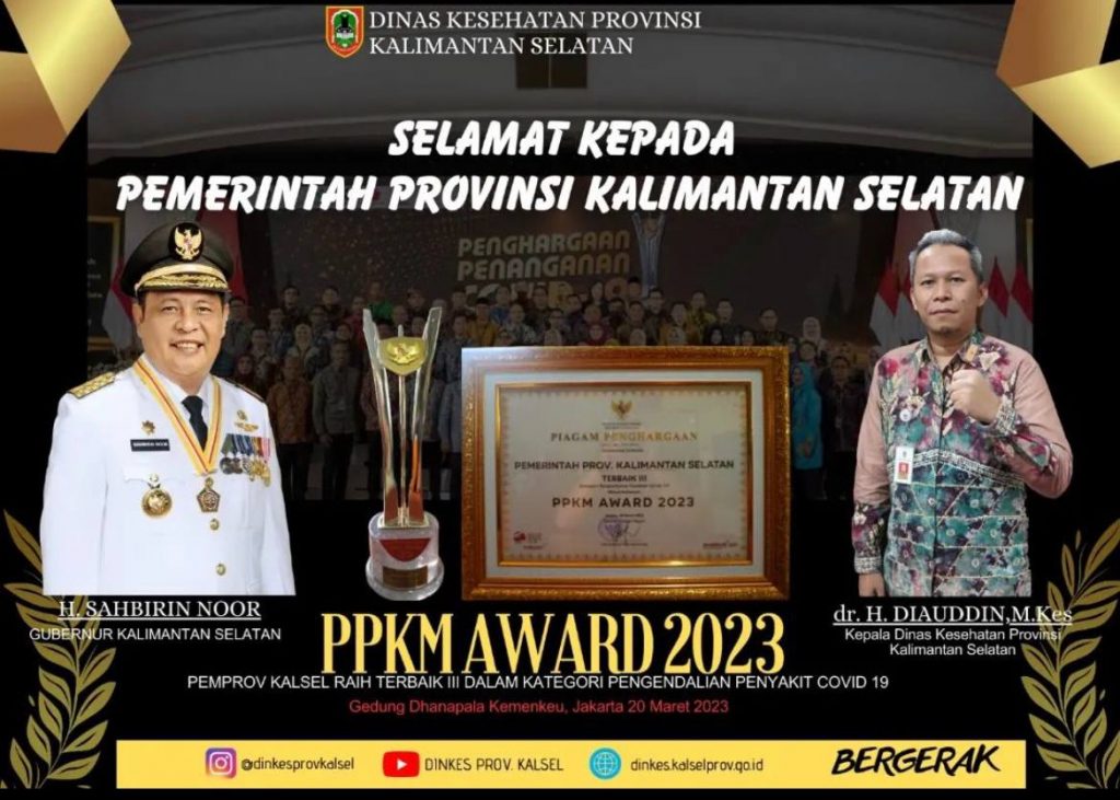 “Jadi kami sangat bersyukur dan mengucapkan terima kasih kepada semua pihak yang telah berkontribusi semalam penanganan Covid-19, sehingga Kalsel dapat meraih penghargaan ini,” kata Kepala Dinas Kesehatan Kalsel, Diauddin di Banjarmasin, Selasa (28/3/2023).