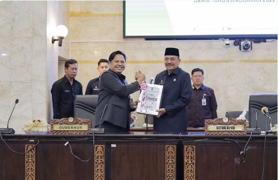 Berkaitan dengan pengelolaan keuangan daerah, Gubernur menjelaskan bahwa pendapatan daerah tahun 2022 ditetapkan sebesar Rp 7.854.987.591.281,00. Dari target yang telah ditetapkan, pendapatan daerah terealisasi Rp 9.085.722.834.734,26 atau tercapai sebesar 115,67 persen.