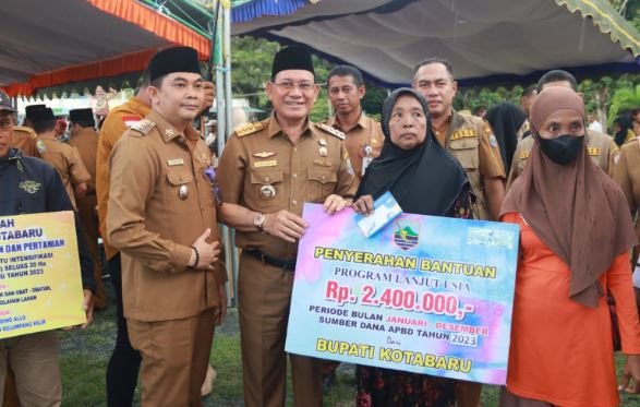 Kunjungan kerja yang dilaksanakan oleh Bupati dan Wakil Bupati Kotabaru beserta satuan kerja daerah kabupaten Kotabaru tersebut untuk menyerahkan bantuan paket sembako, bantuan Lansia.
