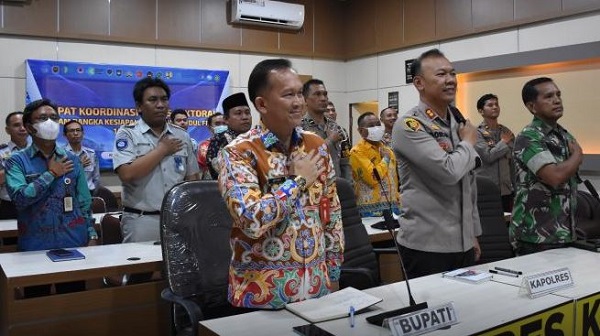 KUALA KAPUAS, Kalimantanlive.com – Sekretaris Daerah Kabupaten Kapuas, Septedy bersama Kapolres Kapuas AKBP Qori Wicaksono dan SKPD mengikuti Rakor Lintas Sektorar Bidang Operasional dengan Menteri PMK Muhajir Effendi dalam rangka kesiapan menghadapi Idul Fitri 1444 H / 2023 secara virtual, di Aula Sarja Arya Racana Polres Kapuas, Kamis (06/4/2023).