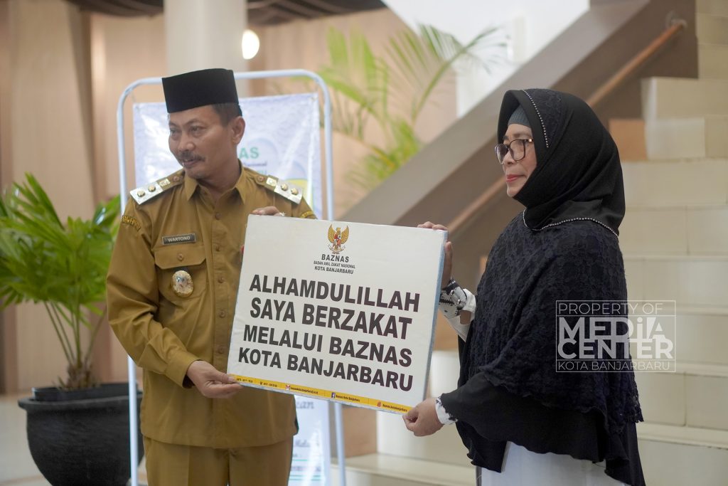 Saat kegiatan itu, Wakil Wali Kota Banjarbaru Wartono turut ikut dalam pembayaran zakat pada siang harinya.