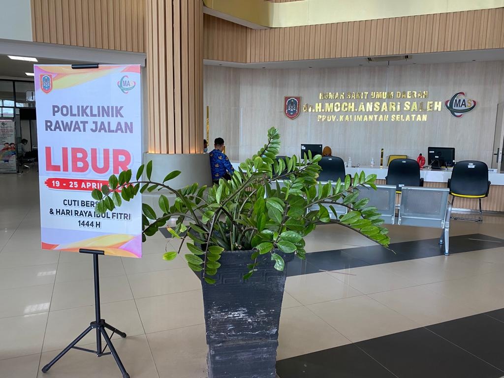 “Maka dari itu, Gubernur Kalimantan Selatan, H Sahbirin Noor menginstruksikan kepada seluruh pelayanan kesehatan, terutama Rumah Sakit Umum Daerah (RSUD) Moch Ansari Saleh agar terus memberikan pelayanan prima kepada masyarakat, walaupun memasuki libur cuti bersama Idulfitri dan kami memastikan pelayanan tetap berjalan seperti biasanya,” ucap Direktur RSUD Moch Ansari Saleh Banjarmasin, Among Wibowo, Banjarmasin, Senin (17/4/2023).