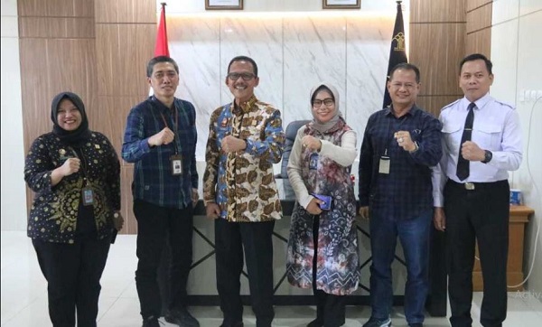 Rombongan Plt Direktur Utama Bank Kalsel Fachrudin dan Kepala Divisi Sekretaris Perusahaan Suriadi, serta Staf Legal Bank Kalsel diterima Kakanwil Kemenkumham Faisol Ali.