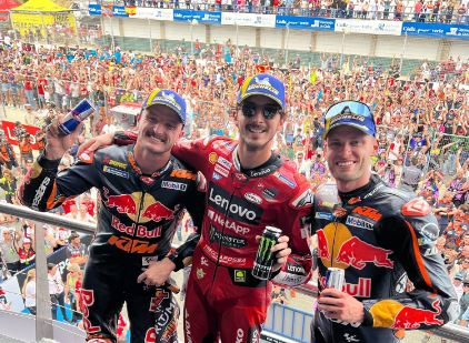 Posisi kedua ditempati Brad Binder dan tempat ketiga menjadi milik rekan setimnya di KTM Jack Miller.