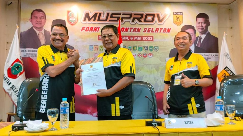 Gubernur Kalimantan Selatan menjadi calon tunggal pada pemilihan Ketua Umum FORKI Kalsel pada Musprov Forki tahun 2023 yang dihadiri oleh seluruh pengurus pengurus kabupaten/kota PB Forki.
