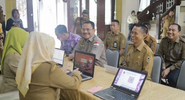 Ketua DPRD Kalsel H Supian HK dan jajaran Sekretariat DPRD Kalsel mendukung Disdukcapil Kota Banjarmasin terkait program KTP Digital di DPRD Kalsel, Selasa (02/05/2023).(Humas DPRD Kalsel).