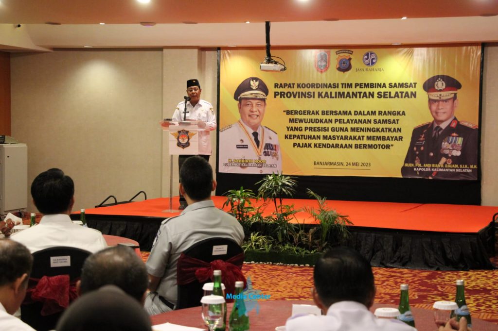 BANJARMASIN, KALIMANTANLIVE.COM – Gubernur Kalimantan Selatan (Kalsel), H Sahbirin Noor resmi membuka Rapat Koordinasi (Rakor) Pembina Samsat Tingkat Provinsi 2023, Banjarmasin, Rabu (24/5/2023).