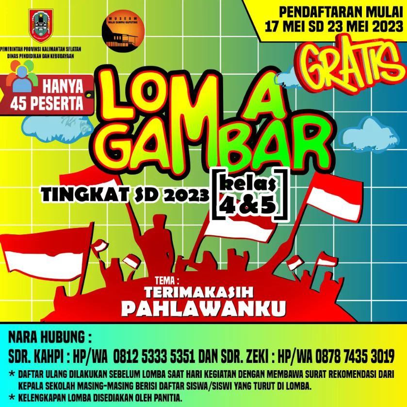 Sementara itu, Kasi Cagar Budaya dan Permuseuman Disdikbud Kalsel, Arry Risfansyah menambahkan rencana perlombaan akan dilaksanakan pada 29 Mei 2023 di halaman Museum Waja Sampai Kaputing (Wasaka).