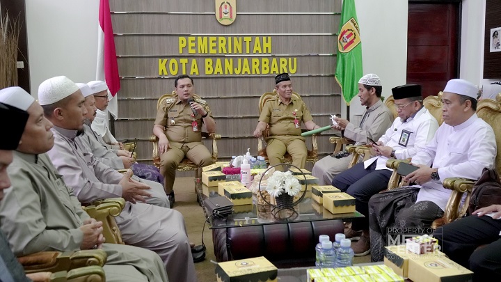 BANJARBARU, KALIMANTANLIVE.COM – Wali Kota Banjarbaru HM Aditya Mufti Ariffin didampingi Sekretaris Daerah Kota Banjarbaru, melangsungkan pertemuan bersama ulama se-Kota Banjarbaru terkait rencana kegiatan Dauroh ke Yaman-Tarem, di Ruang Tamu Utama Kantor Wali Kota Banjarbaru, Senin (29/05/2023).