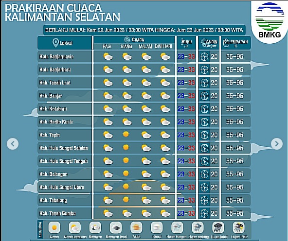 # Baca Juga :Peringatan Dini BMKG Selasa 20 Juni 2023, BMKG: 19 Wilayah Bercuaca Ekstrem Termasuk Kalimantan Selatan