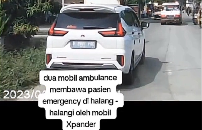 Dalam rekaman video itu terlihat pengemudi mobil ambulans sudah membunyikan sirene untuk meminta jalan, namun mobil Mitsubishi Xpander yang berada di depannya enggan untuk menepi dan tetap mejalankan mobilnya dengan kencang.