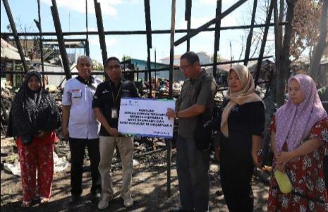 Penyerahan bantuan korban kebakaran itu juga disaksikan Lurah Teluk Dalam, Mukhlis Adha.