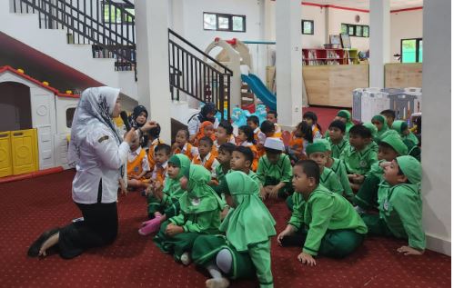 Kegiatan di mulai dengan mendengarkan dongeng atau bercerita tentang berbagai hal yang memiliki nilai edukasi terhadap anak.