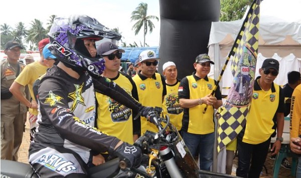 Sebanyak 117 paserta trail game hayau barait 7 yang langsung dilepas Bupati Kotabaru H Sayed Jafar dengan mengibarkan bendera start tanda para rider siap melintas jalur di sirkuit SJA Tbk tersebut.