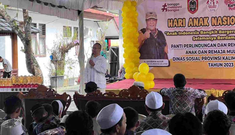 BANJARBARU, KALIMANTANLIVE.COM – Memeriahkan Hari Anak Nasional 2023, Dinas Perpustakaan dan Kearsipan Kalimantan Selatan ( Dispersip Kalsel ) memboyong Pencerita Nasional Mochamad Ariyo Faridh Zidni atau yang akrab disapa Kak Aio, ke Panti Perlindungan dan Rehabilitasi Sosial Anak dan Remaja ( PPRSAR ) Mulia Satria, Banjarbaru belum lama ini.
