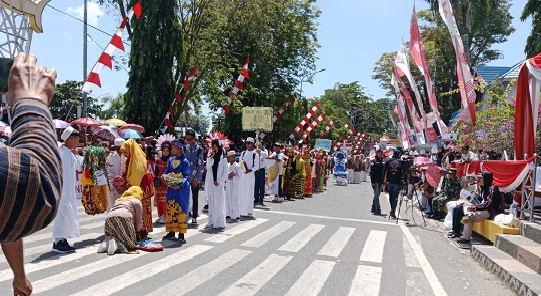 Dimana dalam pawai karnaval ini, menghadirkan kombinasi yang menarik antara tradisi, kreatif modern, mobil hias dan pakaian adat dari seluruh daerah, beragam profesi serta marching band yang memukau ribuan penonton.
