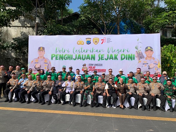 Dimana pada kesempatan itu, Kapolda Kalsel turun secara langsung menanam bibit pohon besar yakni Tabebuya ungu.
