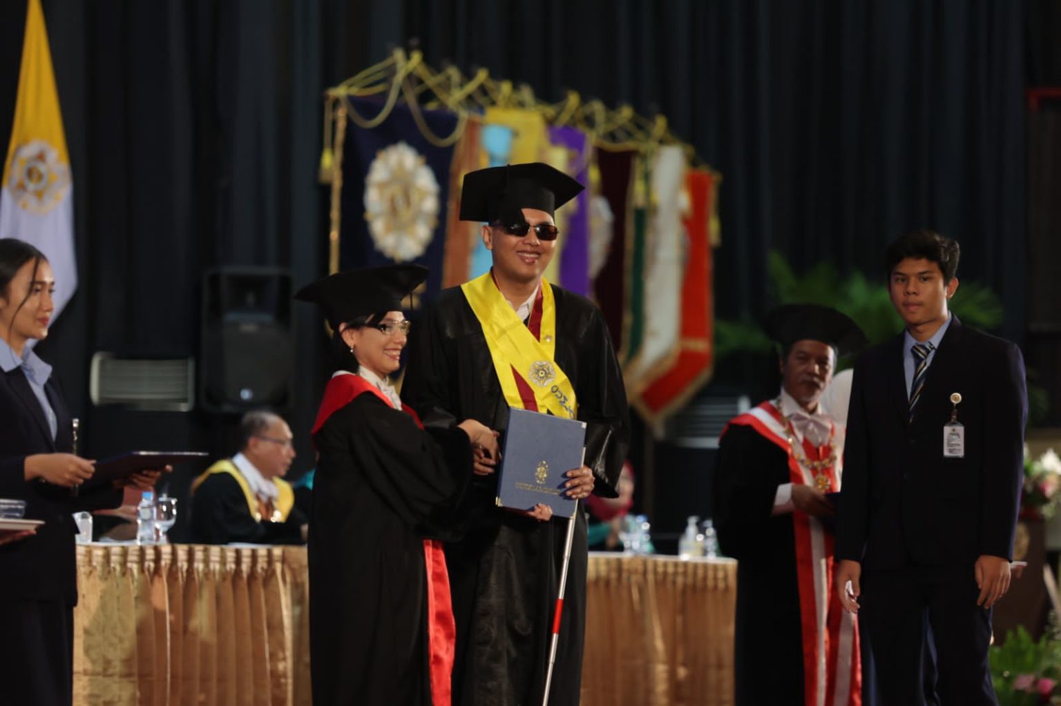 YOGYAKARTA, KALIMANTANLIVE.COM – Alexander Farrel Rasendriyo Haryono (22), seorang penyandang tunanetra yang memiliki keterbatasan penglihatan bisa lulus dari Universitas Gadjah Mada (UGM) dengan predikat cumlaude.