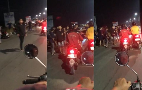 “Bekelahi banar,” ujar perekam video yang tengah melintas pakai sepeda motor.