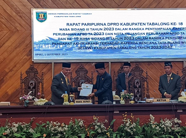 TANJUNG, Kalimantanlive.com – Tujuh fraksi anggota Dewan Perwakilan Rakyat Daerah (DPRD) Kabupaten Tabalong menyetujui rancangan peraturan paerah (Raperda) Rencana Tata Ruang Wilayah (RTRW) 2023-2042.