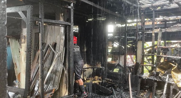 “Tadi itu hendak makan siang bersama anak istri di bawah. Pas anak saya mau ngambil piring, dia melihat ke lantai dua rumah. Kata anak saya, pah ada api,” jelasnya.
