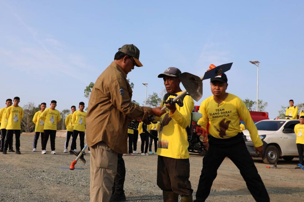 Sebelum kegiatan babat semak belukar, Gubernur Kalsel, Sahbirin Noor beserta pasukan Elang Darat Karhutla dan lulusan IPDN mengadakan apel di Kawasan Alam roh 24 Kiram Park. Kegiatan ini ditandai dengan penyerahan alat pemotong rumput kepada pasukan Elang Darat Karhutla.