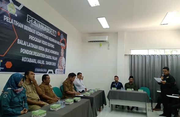 KOTABARU, Kalimantanlive.com – Balai Latihan Kerja (BLK) Komunitas Pondok Pesantren Darul Falah Kotabaru mengadakan penutupan pelatihan berbasis kompetensi kejuruan multimedia program video editing yang dihadiri SKPD terkait dan disaksikan 16 orang peserta, Selasa (05/09/23).