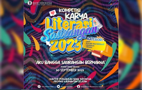 BANJARMASIN, Kalimantanlive.com – Mendorong pengembangan sekaligus mengajak generasi muda untuk mencintai sasirangan, Kantor Perwakilan Bank Indonesia (BI) Provinsi Kalimantan Selatan (Kalsel) menggelar Kompetisi Karya Literasi Sasirangan (KKLS) 2023.