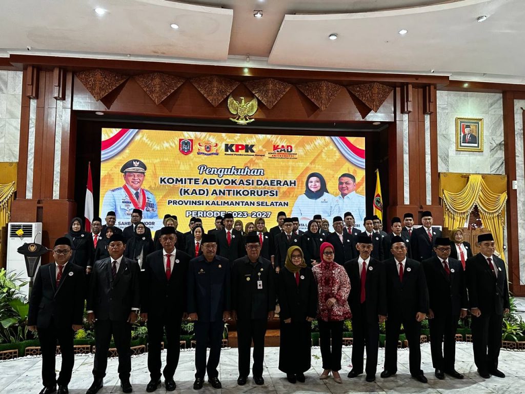 BANJARMASIN, KALIMANTANLIVE.COM – Gubernur Kalimantan Selatan (Kalsel), Sahbirin Noor mengukuhkan pengurus Komite Advokasi Daerah (KAD) Antikorupsi Kalseln periode 2023-2027 di Banjarmasin, Rabu (13/9/2023).