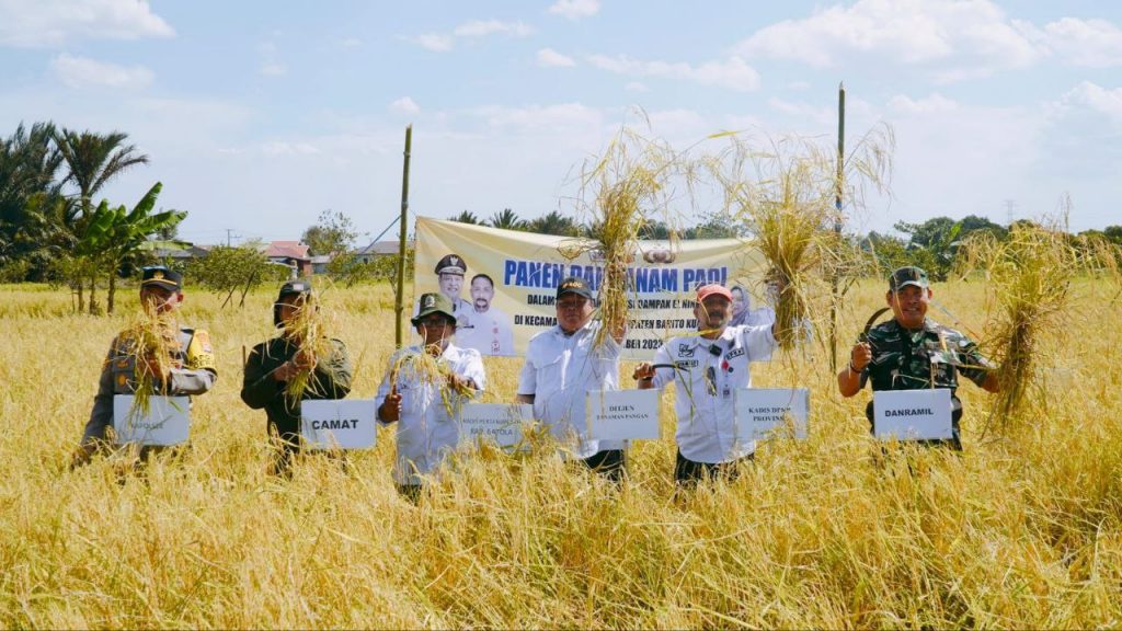 MARABAHAN, KALIMANTANLIVE.COM – Dalam rangka mitigasi dampak el nino pada sektor pertanian, Pemerintah Provinsi Kalimantan Selatan melalui Dinas Pertanian dan Ketahanan Pangan Kalimantan Selatan melaksanakan panen dan tanam padi di Kabupaten Barito Kuala.