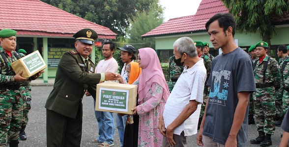 “Kami punya delapan wajib TNI, salah satunya yang ke-8 mengatasi kesulitan masyarakat. Salah satu bentuk kepeduliannya adalah dengan pembagian sembako ini” katanya.