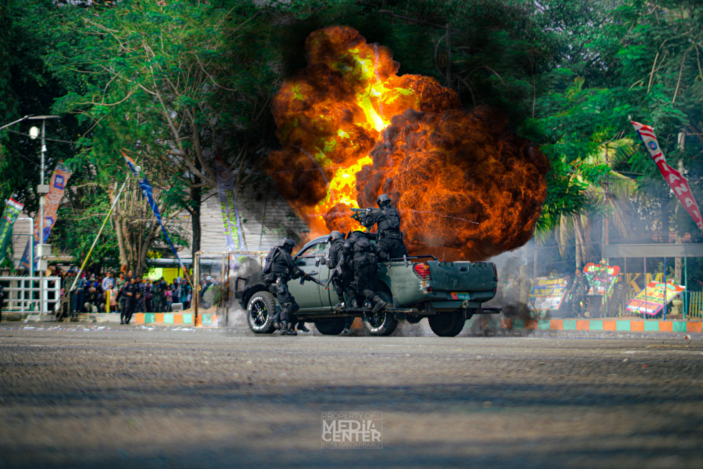 Upacara peringatan HUT TNI yang spektakuler ini menampilkan berbagai atraksi yang memukau dan memberikan penghormatan kepada para prajurit yang berdedikasi dalam menjaga keamanan dan kedaulatan negara. Salah satu sorotan utama acara ini adalah simulasi penyelamatan sandera dari para perampok bersenjata.