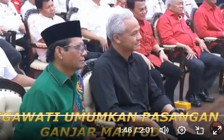 Pengumuman nama pasangan Capres-Cawapres Ganjar-Mahfud disampaikan langsung Ketua Umum PDIP Megawati Soekarnoputri.