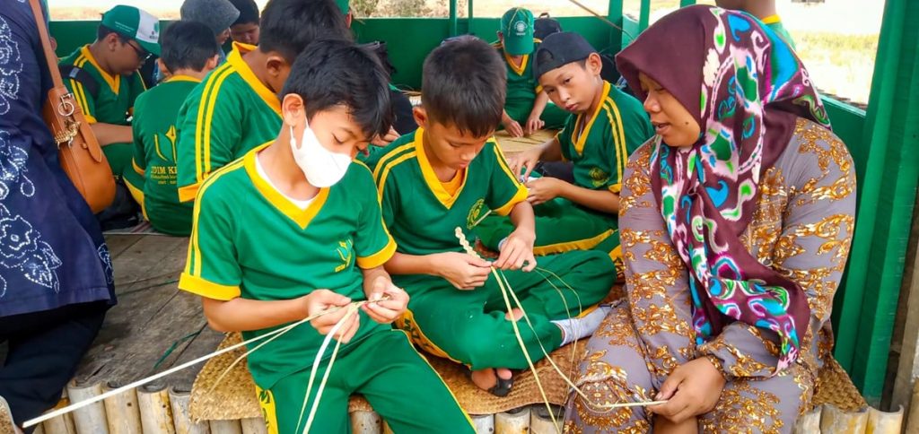 BANJARBARU, KALIMANTANLIVE.COM – Untuk mengetahui proses serta belajar langsung pengolahan kerajinan purun, anak-anak dari Muhammadiyah Islamic Elementary School Banjarmasin mengunjungi Wisata Kuliner Kampung Purun di Kelurahan Palam, Kecamatan Cempaka, Kota Banjarbaru, Kamis (19/10/2023).