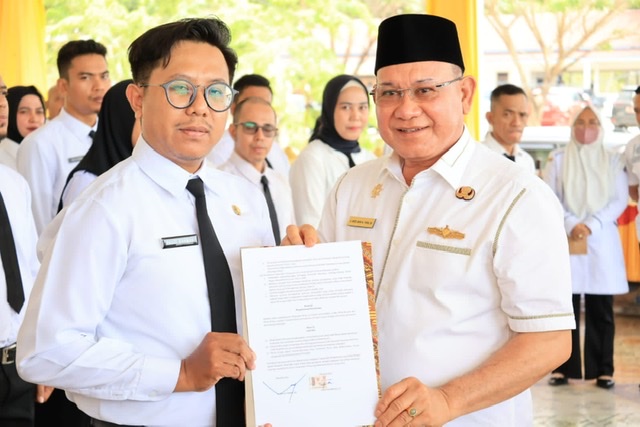KOTABARU, Kalimantanlive.com – Penyerahan SK dan pengambilan sumpah/janji jabatan fungsional pegawai pemerintah dengan perjanjian kerja (PPPK) tenaga teknis formasi tahun 2022, dilantik secara langsung oleh Bupati Kotabaru Sayed Jafar di Aula Objek Wisata Jetski Teluk Masjid Kotabaru, Rabu (25/10/2023).