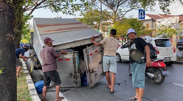 Kanit Lantas Polsek Banjarmasin Utara, Iptu Suhardi mengatakan, mulanya tak sengaja dirinya melintas dan melihat box di mobil tersebut tiba-tiba terjatuh, dan kemudian mengenai pohon. Sementara posisi truk terlalu mengambil ke jalur bagian kiri.