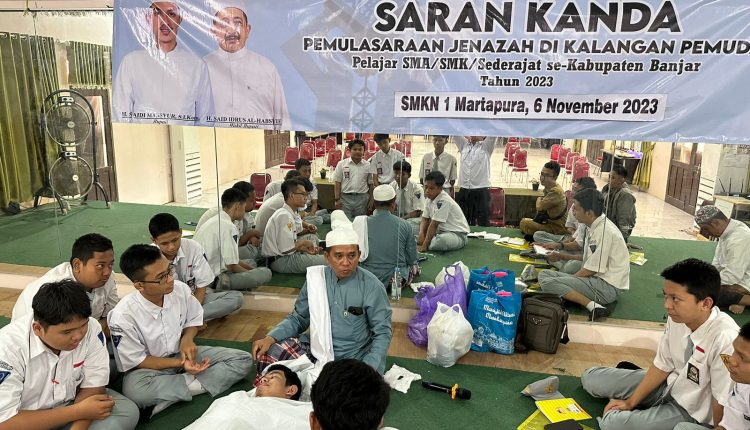 MARTAPURA, KALIMANTANLIVE.COM – Dinas Kebudayaan Kepemudaan Olahraga dan Pariwisata (Disbudporapar) Kabupaten Banjar menggelar Pelatihan Pemulasaran Jenazah di Kalangan Pemuda (Saran Kanda) di SMKN 1 Martapura, Senin (6/11/2023).