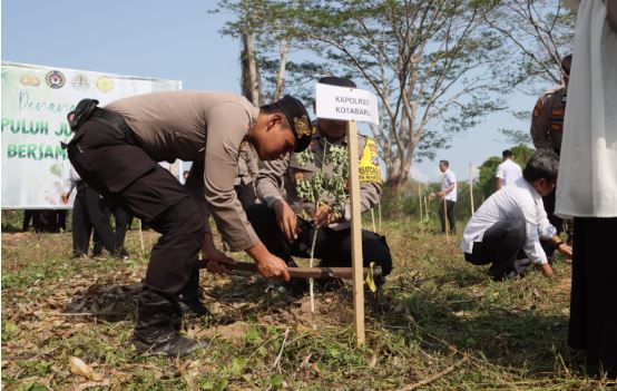 Polres Kotabaru menanam 100 bibit pohon dengan rincian 30 pohon Trembesi, 30 pohon sengon dan 40 pohon bakau. Unsur Forkopimda Kotabaru dan stakeholder lainnya juga dilibatkan dalam kegiatan ini.