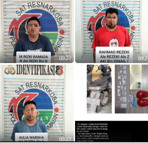 Diketahui tiga pria tersebut adalah MR (23), RR (33), dan AW (30). Dari tangan ketiganya, Polisi berhasil mengamankan 8 paket narkotika jenis sabu dan 13 butir pil ekstasi.