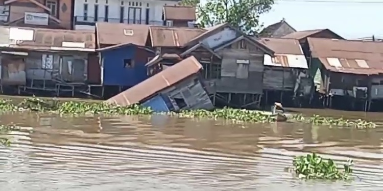 Kondisi rumah yang terbuat dari kayu itu, persis berada di tepian Jalan Sungai Gardu, di tepian kawasan Sungai Martapura kawasan setempat.