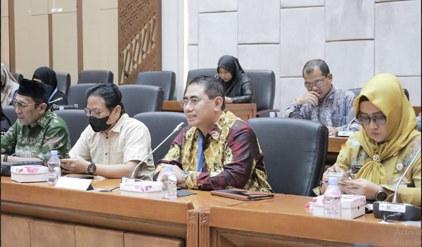 KETUA Komisi IV DPRD Kalsel HM Lutfi Saifuddin (pakai peci hitam) dan jajaran komisi IV saat berdialog dengan Komisi IX DPR RI di Jakarta, terkait dukungan untuk revitalisasi Balai Latihan Kerja dan fasilitas kesehatan, Jumat (1/12/2023). (foto: Humas DPRD Kalsel).