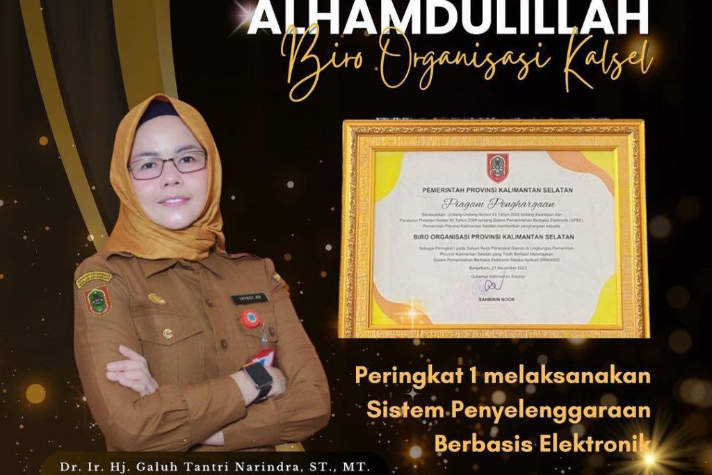 Kepala Biro Organisasi, Galuh Tantri Narindra menyebutkan penerapan tersebut telah dilakukan dengan masif, sehingga di Tahun 2023 ini pihaknya meraih penghargaan dari Gubernur Kalsel, H Sahbirin Noor sebagai peringkat pertama penerapan SPBE melalui aplikasi SRIKANDI.