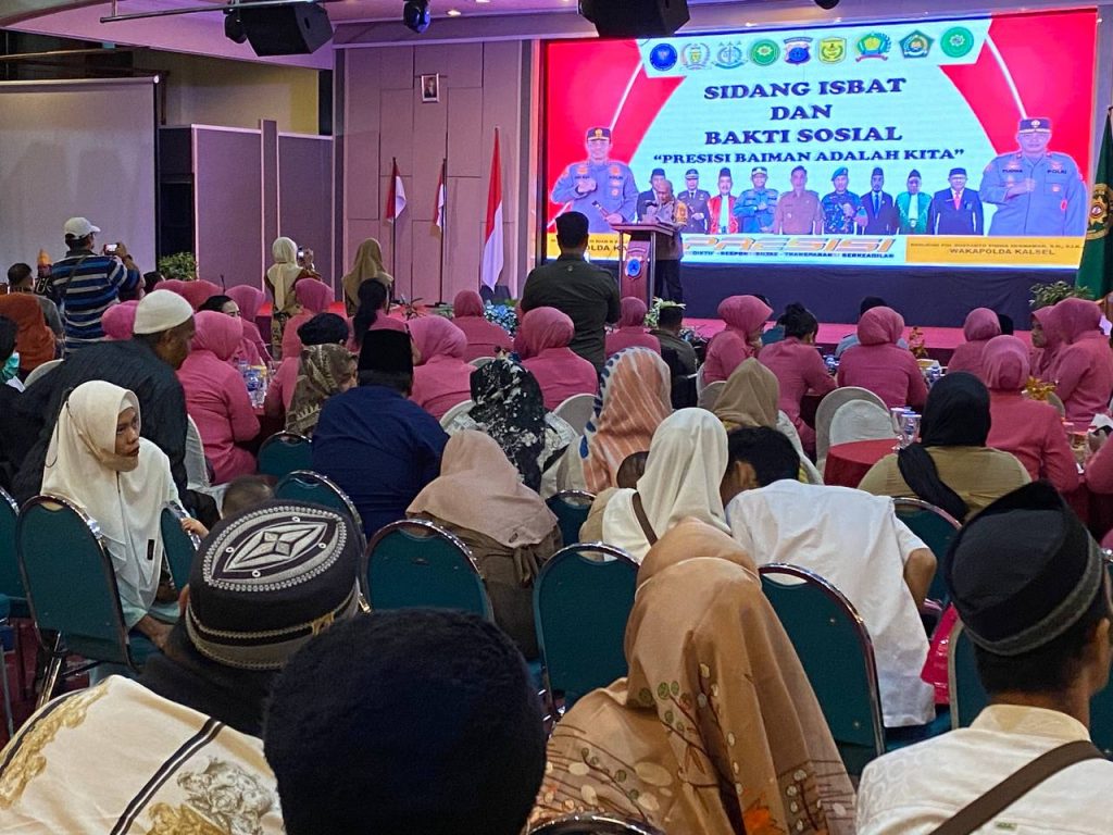 BANJARMASIN, KALIMANTANLIVE.COM – Pemerintah Provinsi Kalimantan Selatan mengapresiasi pelaksanaan Sidang Isbat Nikah Massal sebagai bentuk Sinergitas Kepolisian Daerah Kalsel (Polda Kalsel) dengan Pengadilan Agama Banjarmasin Kelas IA yang diselenggarakan di salah satu hotel di Banjarmasin, Kamis (14/12/2023).