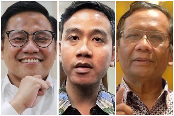 Cawapres nomor urut 1 Muhaimin Iskandar atau Cak Imin, cawapres nomor urut 2 Gibran Rakabuming Raka, dan cawapres nomor urut 3 Mahfud MD.
