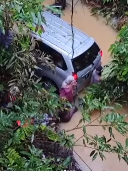 “Karena cuaca hujan, jalan tidak terlihat dan licin mengakibatkan mobil susah dikendalikan dan akhirnya terperosok 10 meter masuk ke sungai dengan kedalaman air sekitar satu meter,” jelasnya.