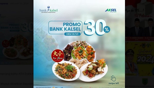 Promo ini khusus diberikan kepada pecinta kuliner nasabah Bank Kalsel di beberapa merchant yang berlaku.