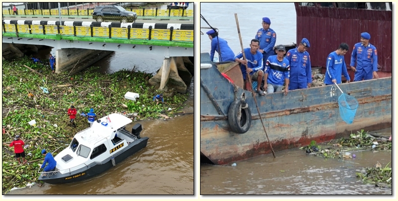 Para petugas yang berbekal Kapal Sapu-Sapu dan 3 buah speedboat milik Satpolair Polresta Banjarmasin mereka “memungut” eceng gondok dan sampah-sampah di sepanjang aliran Sungai Martapura, khususnya yang menumpuk di bawah Jembatan Dewi, Jembatan Antasari, hingga Jembatan Pasar Lama.