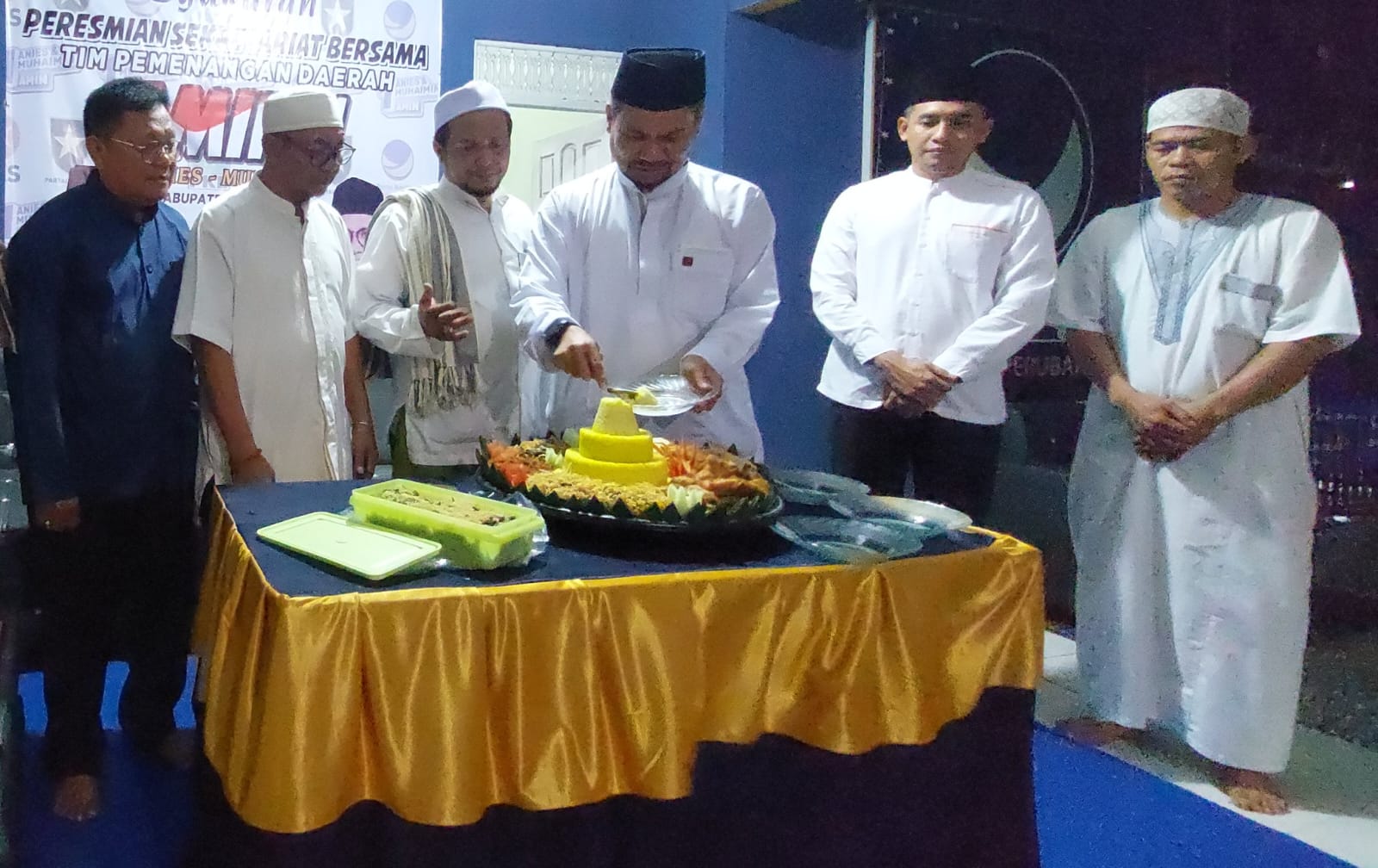 Abdi yang juga mantan wakil bupati Tala ini memotong nasi tumpeng tersebut. Selanjutnya ia berikan kepada figur-figur penting antara lain Ketua DPC Partai Keadilan Sejahtera (PKS) Tala Ikhwan Khariri yang juga sekretaris TPD Amin Tala.